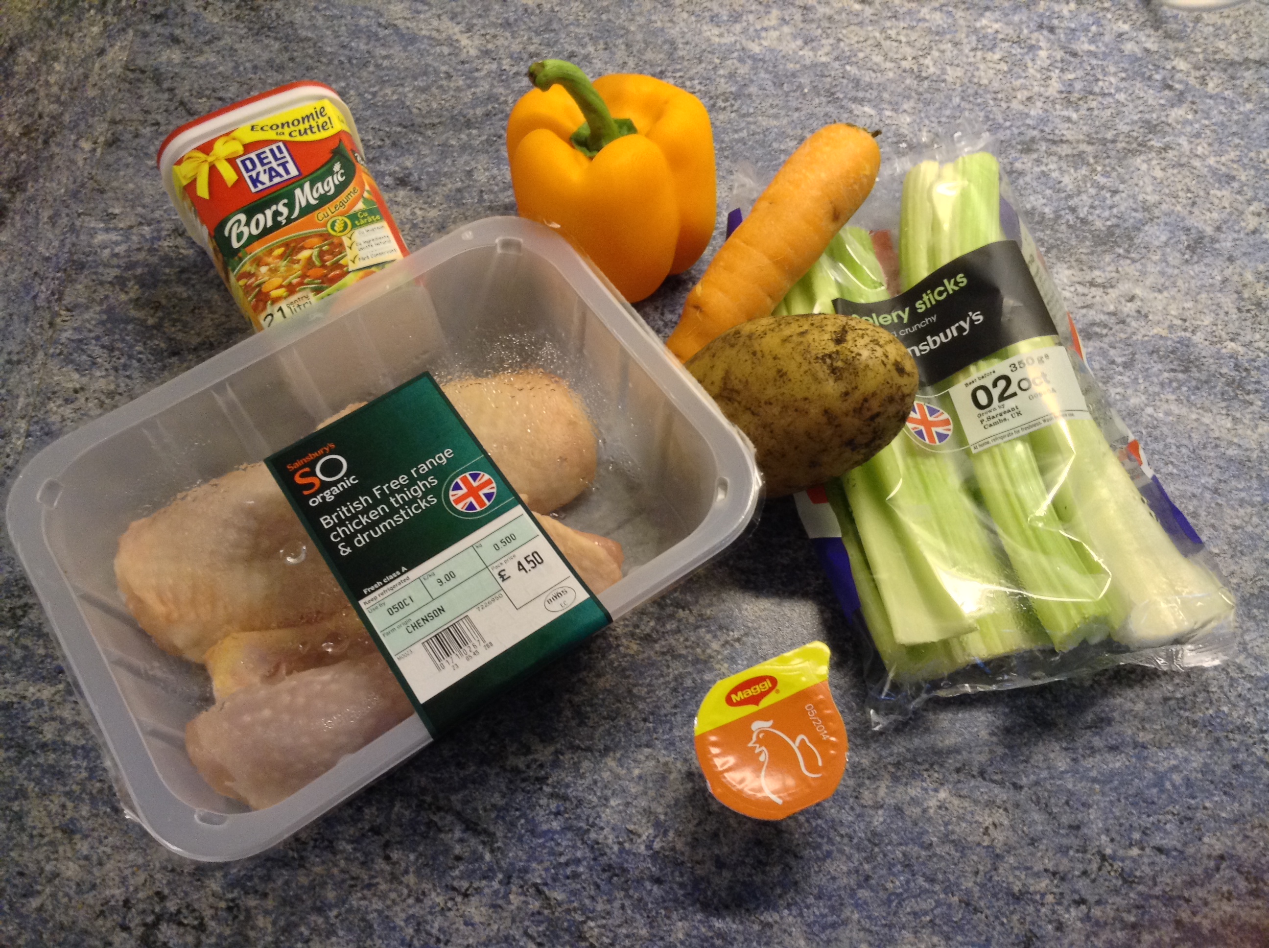 So here is my recipe in handy pictures. I add this sour powder at the end, called borsh, but not to worry. The soup would be as yummy without it!