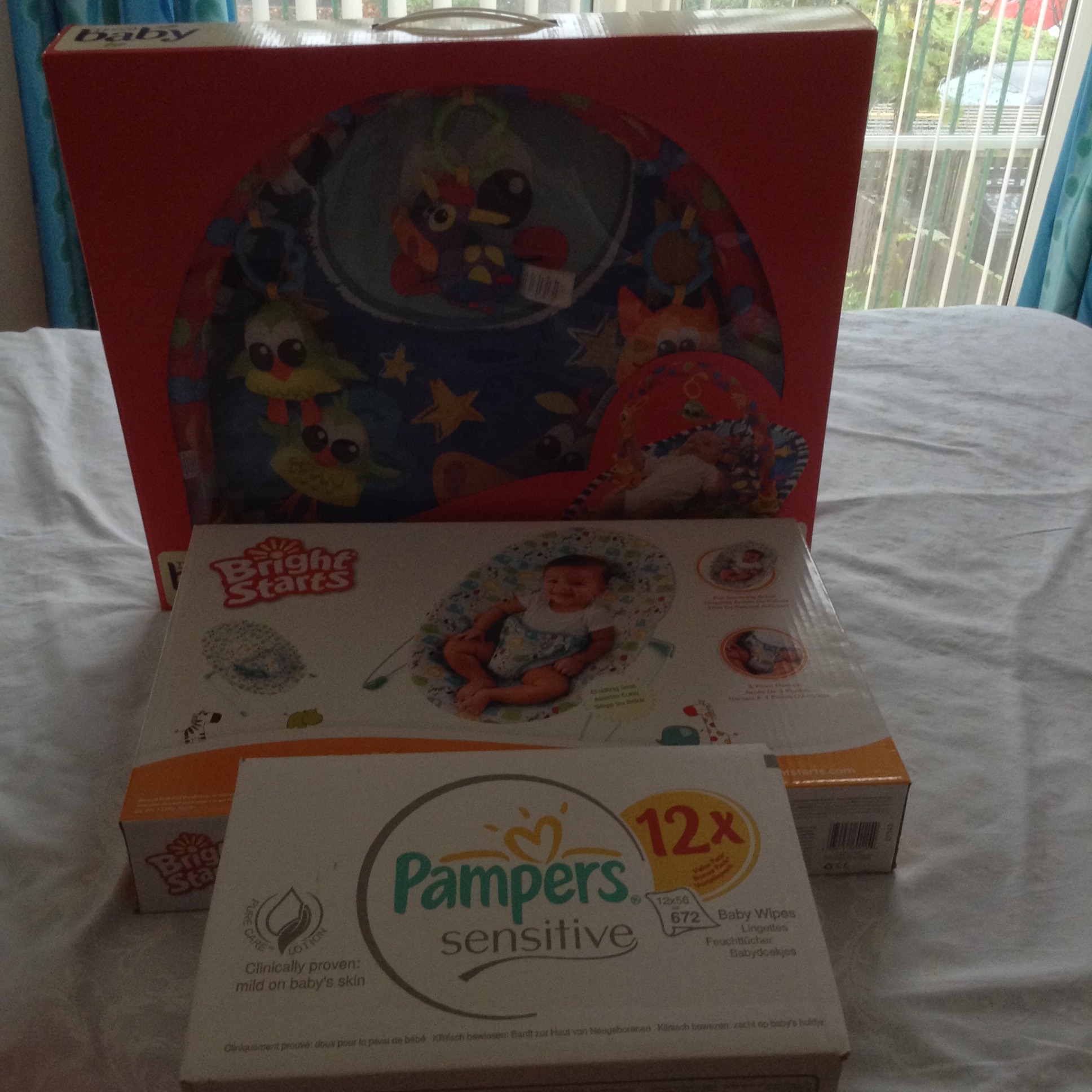 Last week I went and bought a playmat, a bouncy seat and 10 packs of wipes with them.