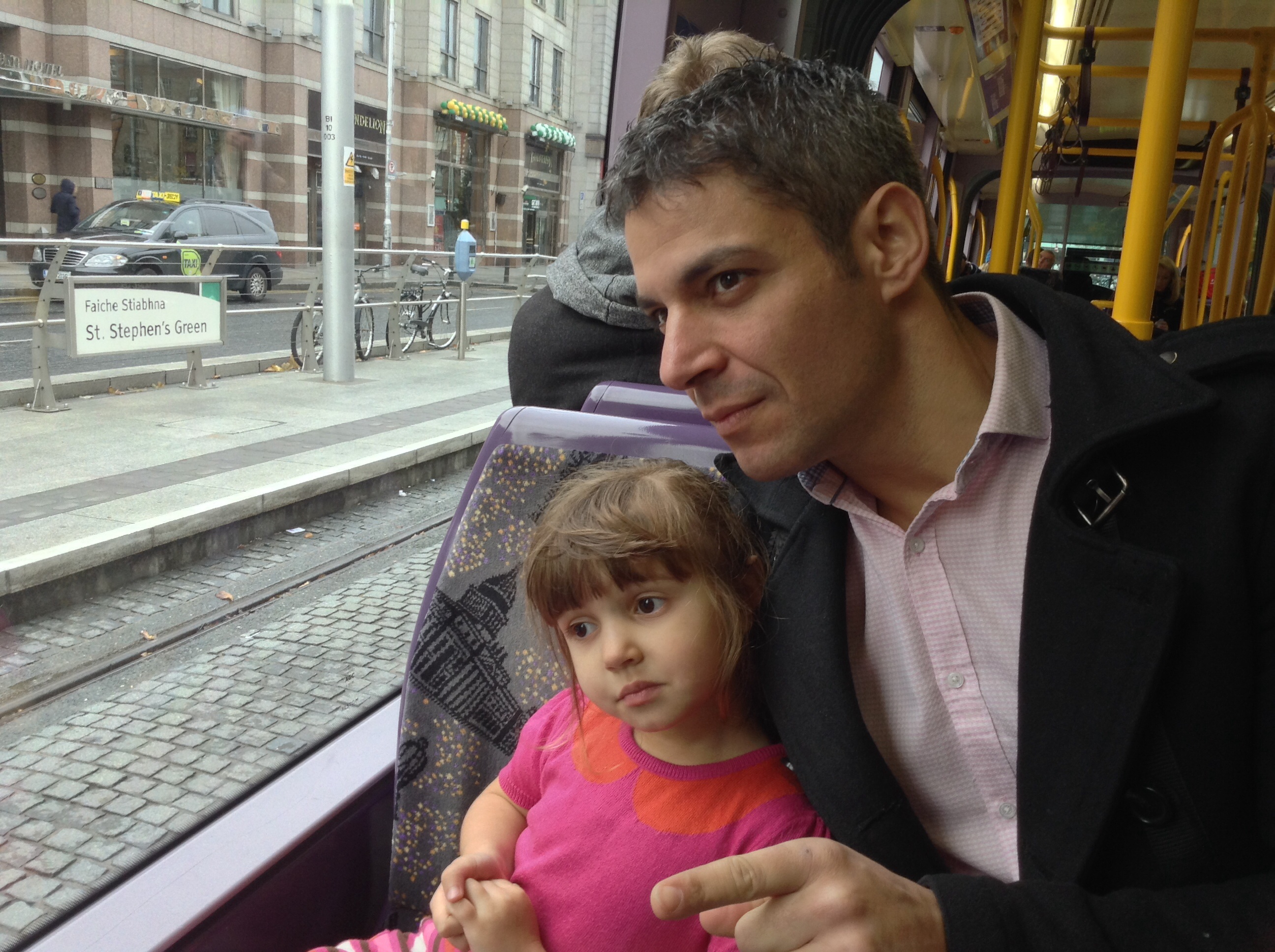 Yes, Kate, she begged us to go for a ride on the “train” today in Dublin and daddy was ready to explain about buildings and all!