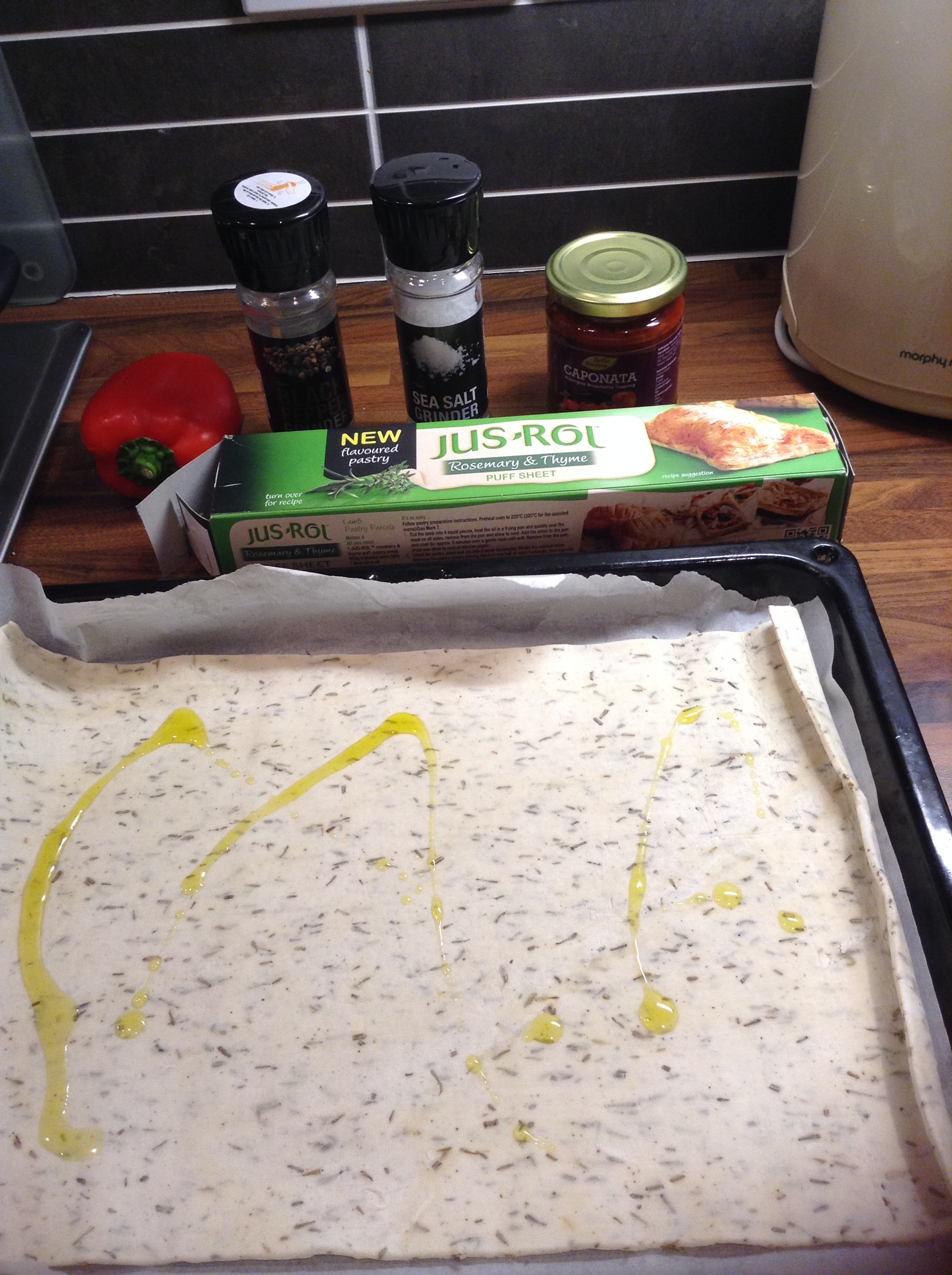 Tonight I remembered the Just-Rol puff pastry I bought the other day and decided to make some sort of home pizza.