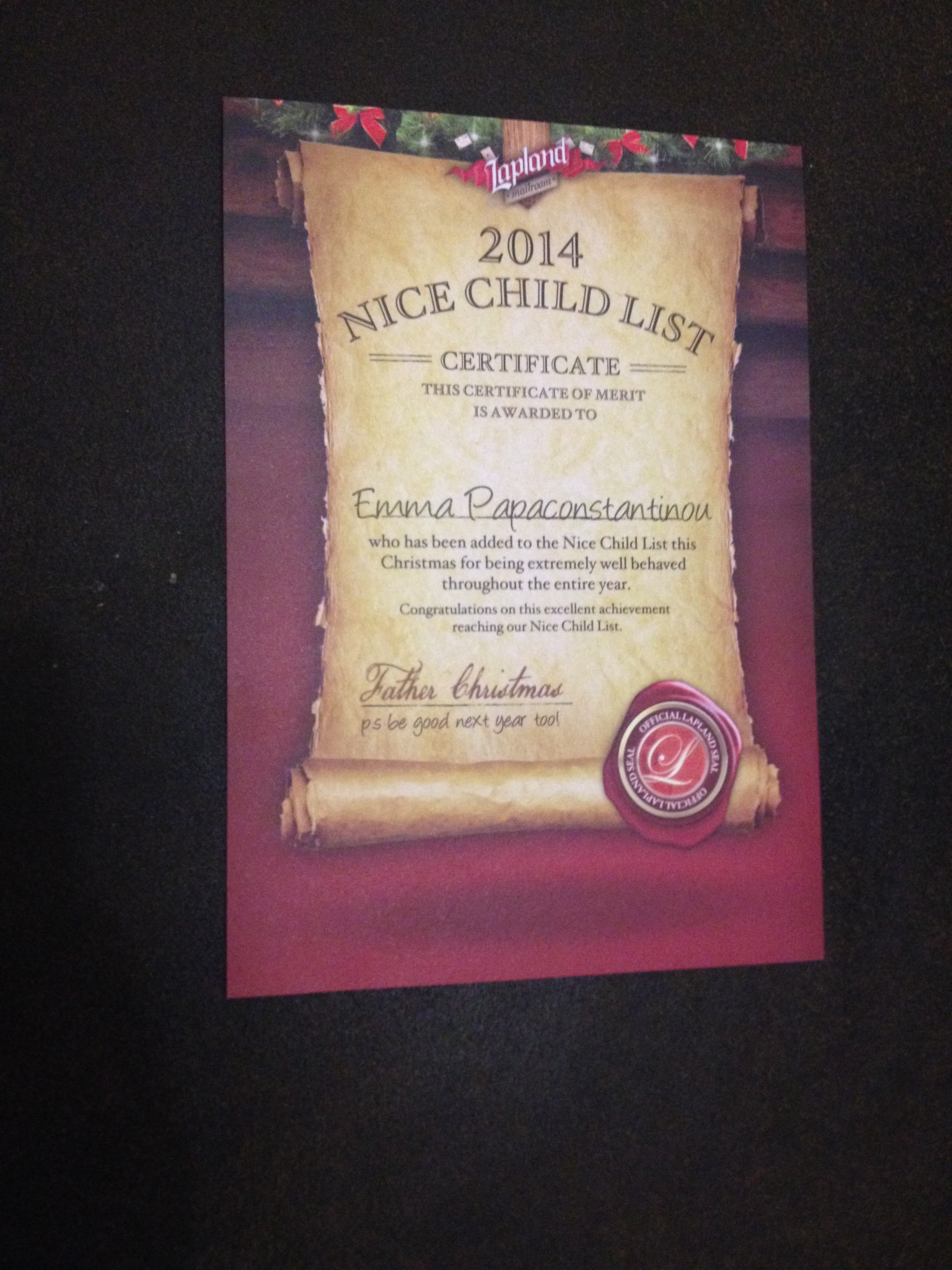 This morning, Santa replied to her letter, via the Lapland Mailroom! Back in October, the elves in Lapland were looking for mummy bloggers to review their Santa letter service and we happily volunteered! Emma received a personalised letter, a “Nice Child Certificate” and an activity pack including a: