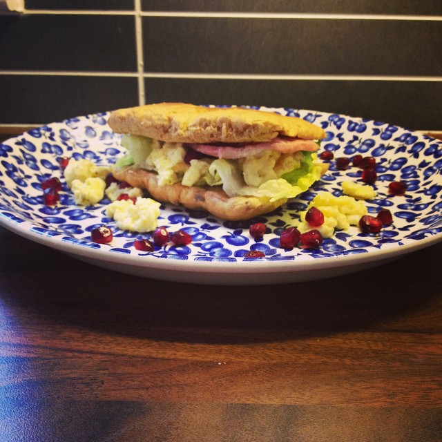 And here it is, ready to be…consumed :-). All in the name of research for the blog, of course, of course! It was yummy, crispy and light and at 250 calories per butty, a very light and tasty lunch!