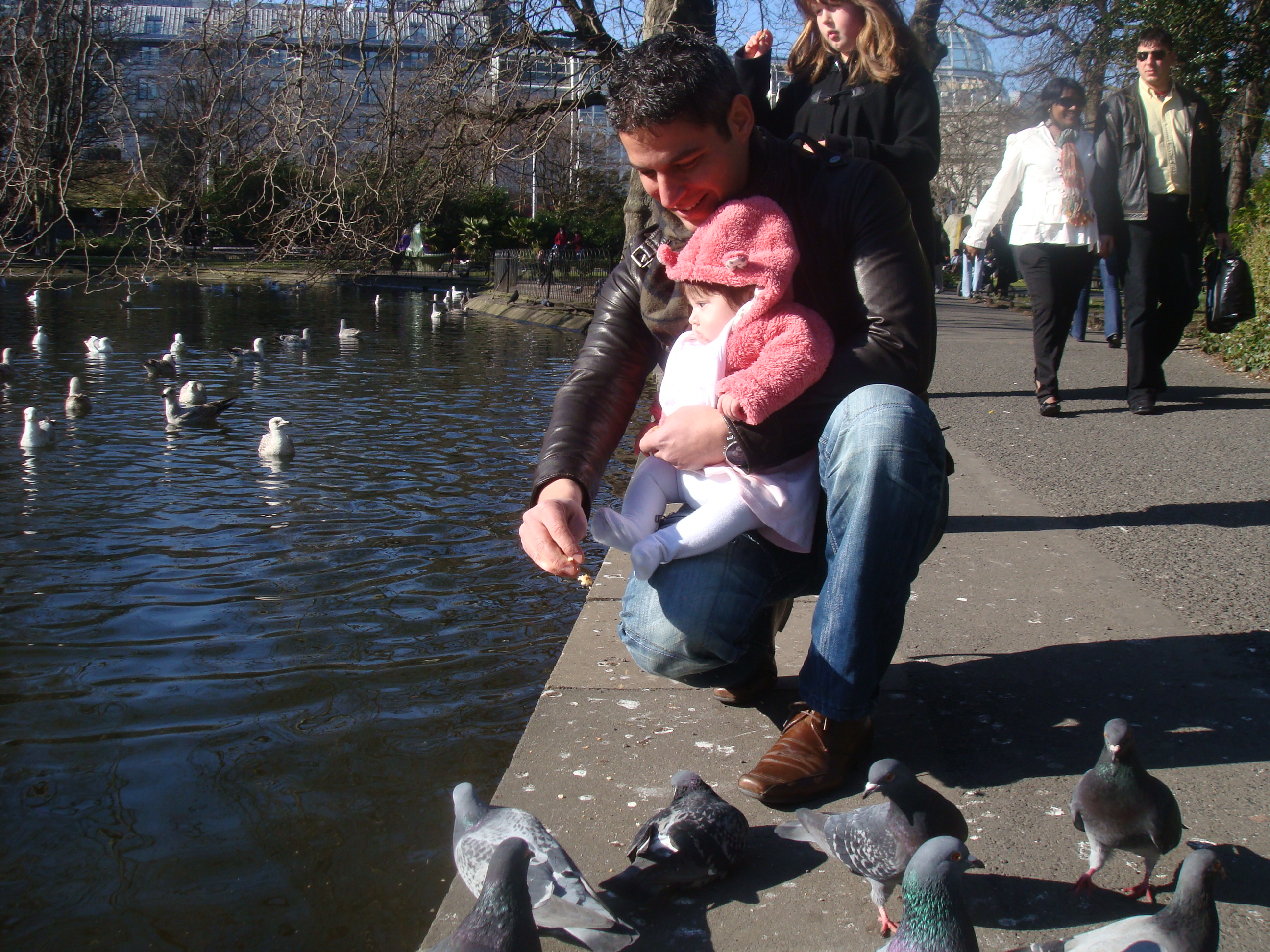 Here is daddy and baby Emma, feeding the pigeons in Saint Stephen’s Green:
