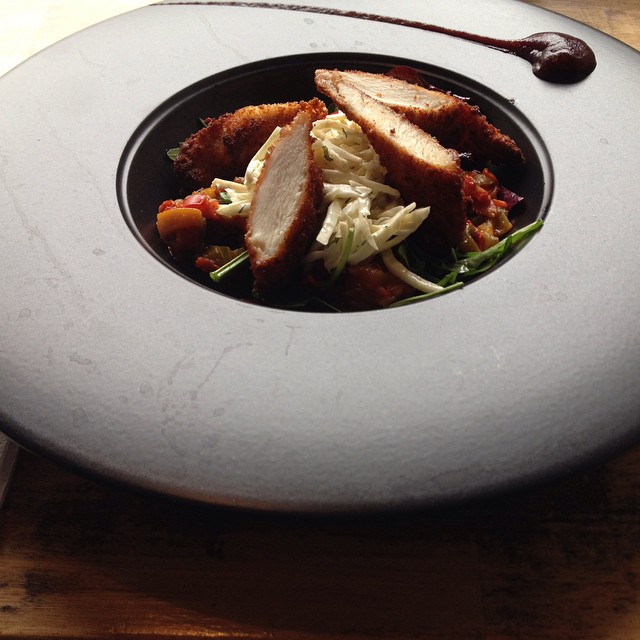 The service was quick, the waiters pleasant and confident and the food beautifully presented and flavoursome. I ordered a small burger and Alex went for their chicken salad, which came beautifully garnished and intriguingly flavoured on a bed of celeriac, rocket and roasted peppers.