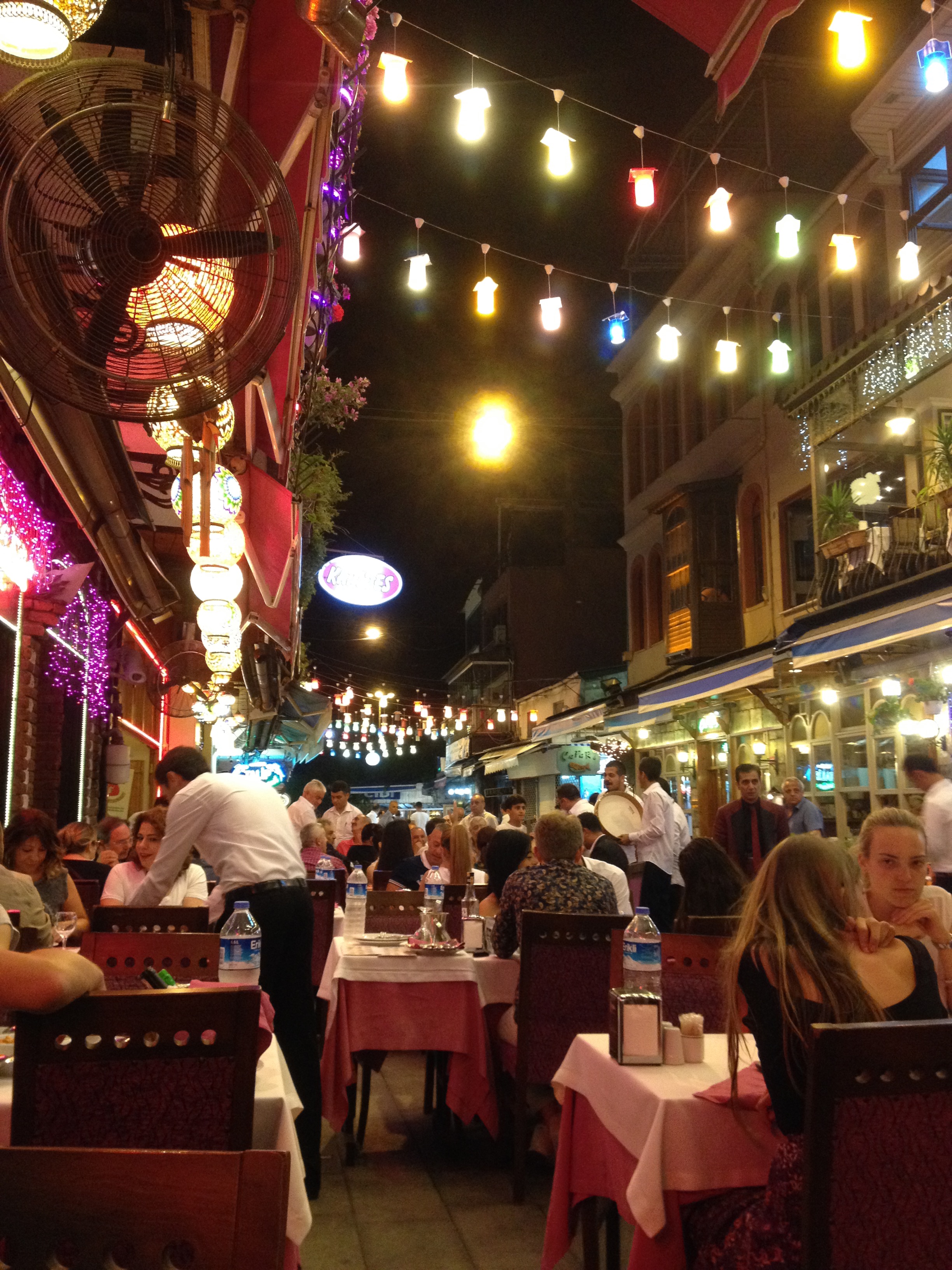 Young and restless local Turks were out with their girlfriends and close friends, having their bayram with loud drum music, singing and dancing (on tables, Emma would add!) and plenty of food and drink!