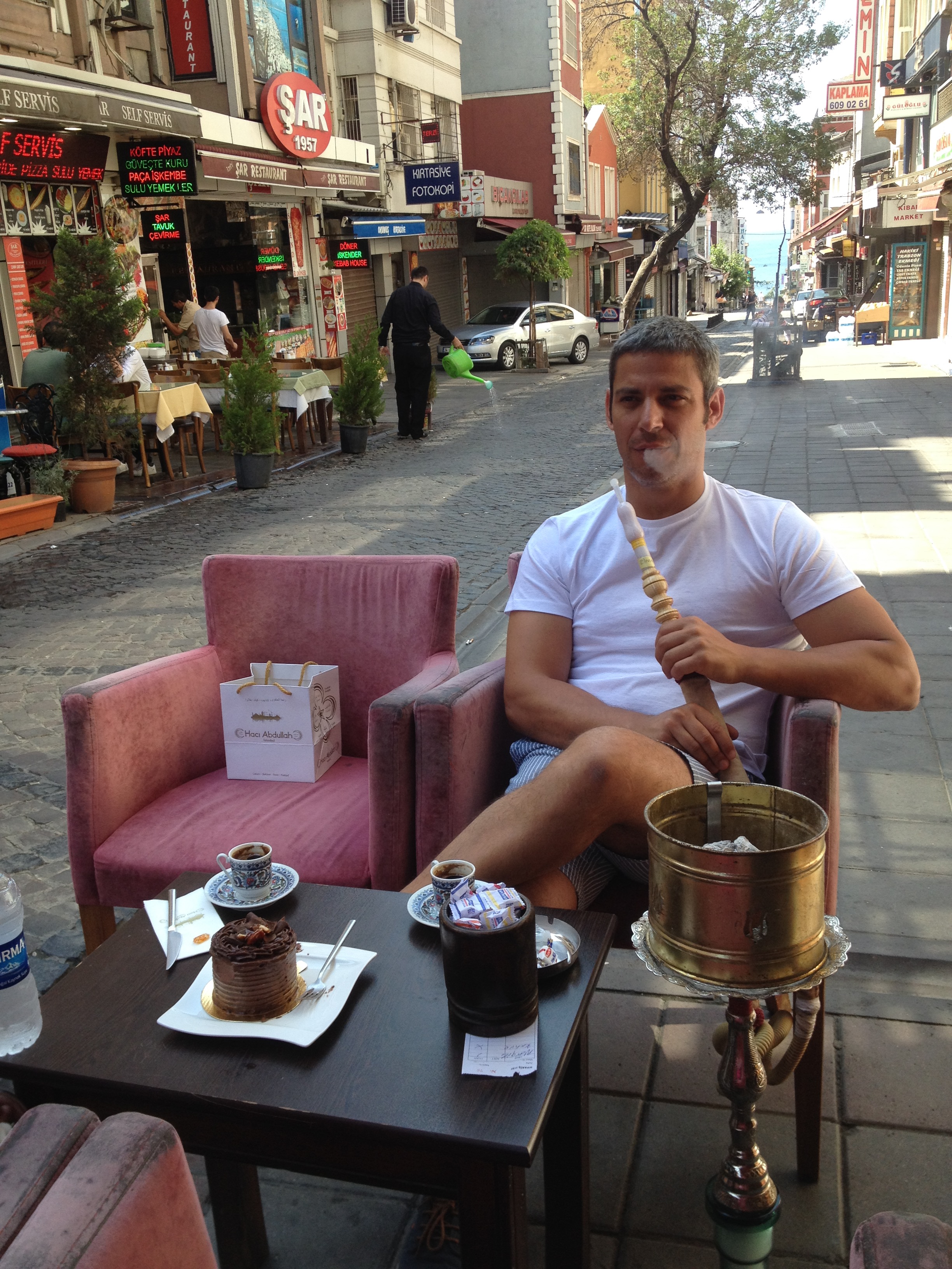 The coffee shop we stopped in had plenty of locals smoking what must have been their morning narghile and we joined in unassumingly. We even bought chocolate cake from the sweet shop next door, to blend in completely ;-)! Our narghile and cake came to around £10, not bad for an authentic experience in the heart of town!