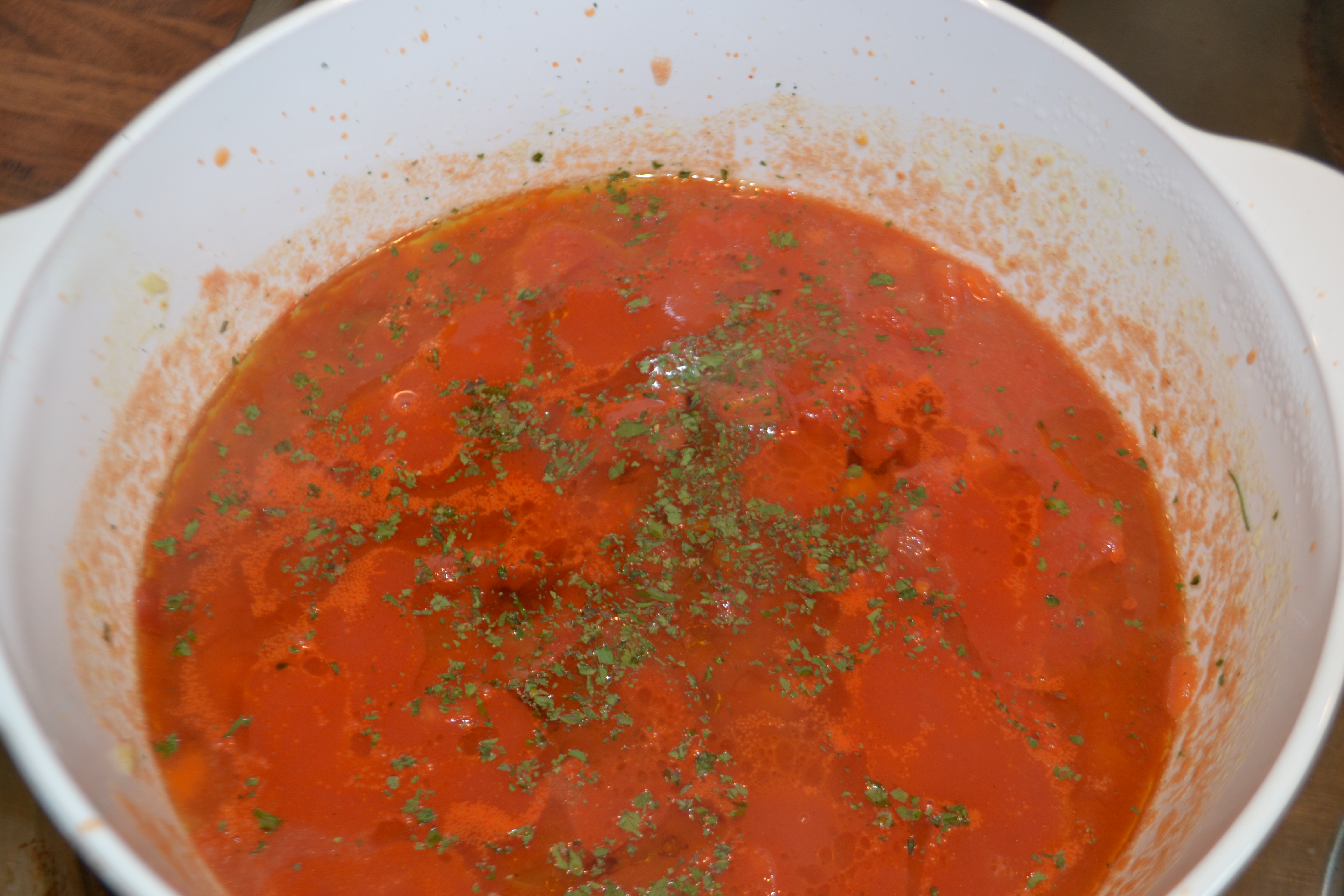 Once the onion softened, it was simply a matter of adding the chopped tomato and loads of olive oil and let it simmer for about half an hour:
