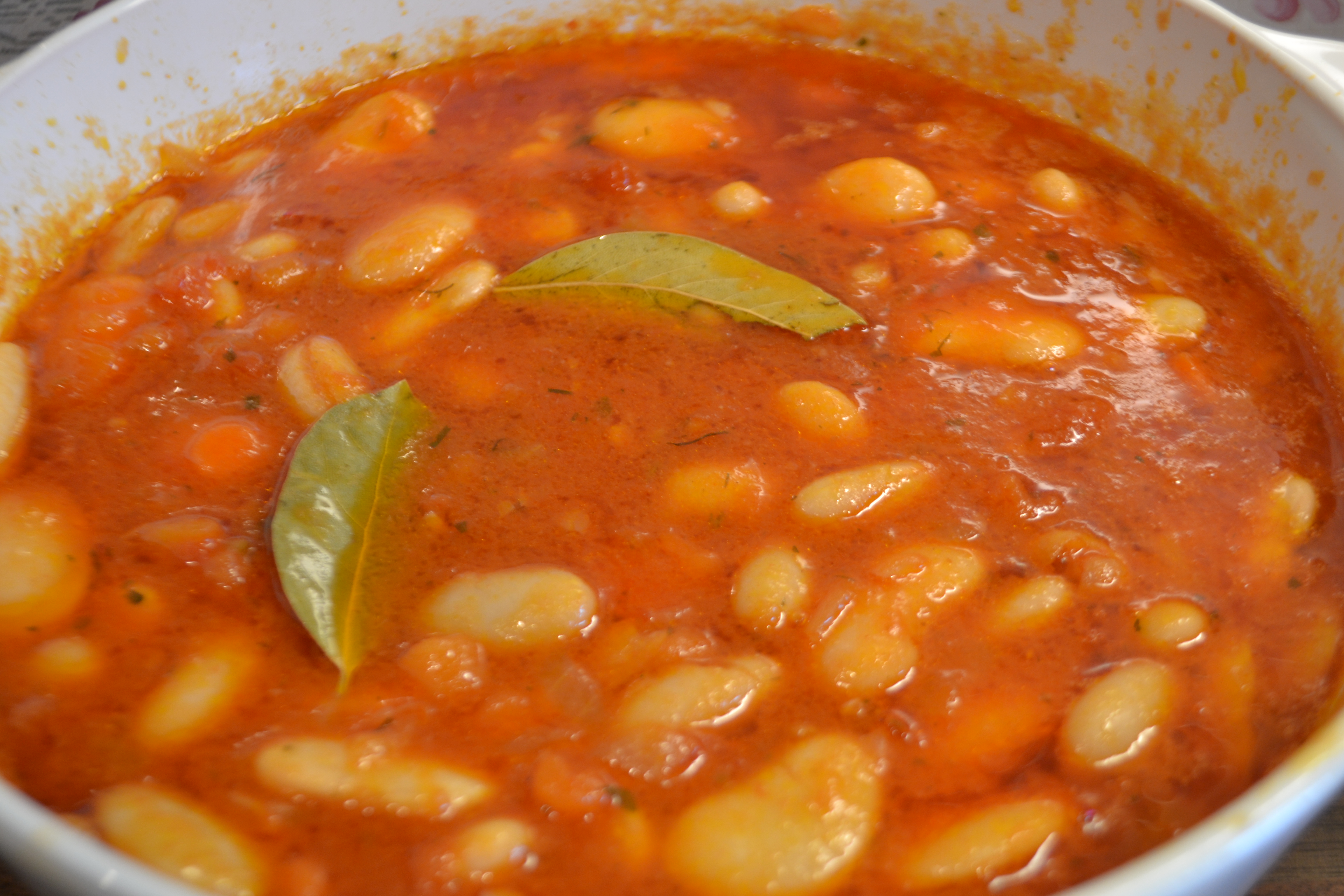 So here is the recipe I came up with, using canned food and as a response to the challenge. It is not my own recipe, I did use the BBC recipe for Greek gigantes plaki as inspiration but I used canned food instead of fresh.